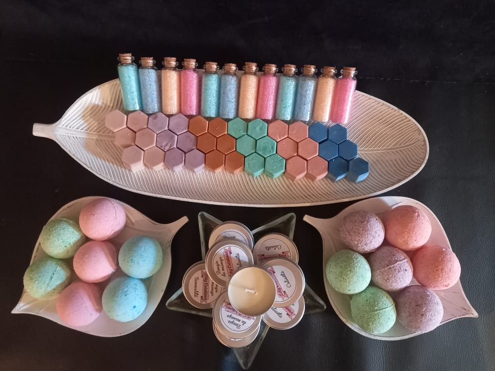 Nous sommes dans une société où prendre du temps pour soi est devenu un luxe pour beaucoup. Nous n’avons pas toujours le temps ni les moyens de le faire. C’est pourquoi, je vous propose de quoi prendre votre moment à vous, à petit prix, sans bouger de chez vous avec une gamme (qui s’agrandira avec le temps) de produits bien-être : bombes de bains, sels de bain, fondants parfumés, bougies de massage et baumes.