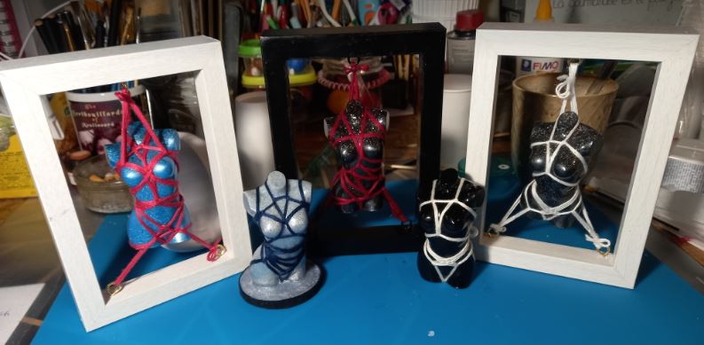- Des créations qui ont rencontré un franc succès comme les bustes shibari, les figurines minions ou lapins crétins SM que je continue à faire à la demande.